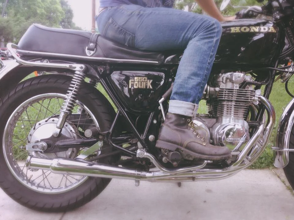 5. Riding his 1977 motorcycle. He's loved Honda motorcycles since childhood, when his boot-wearing,