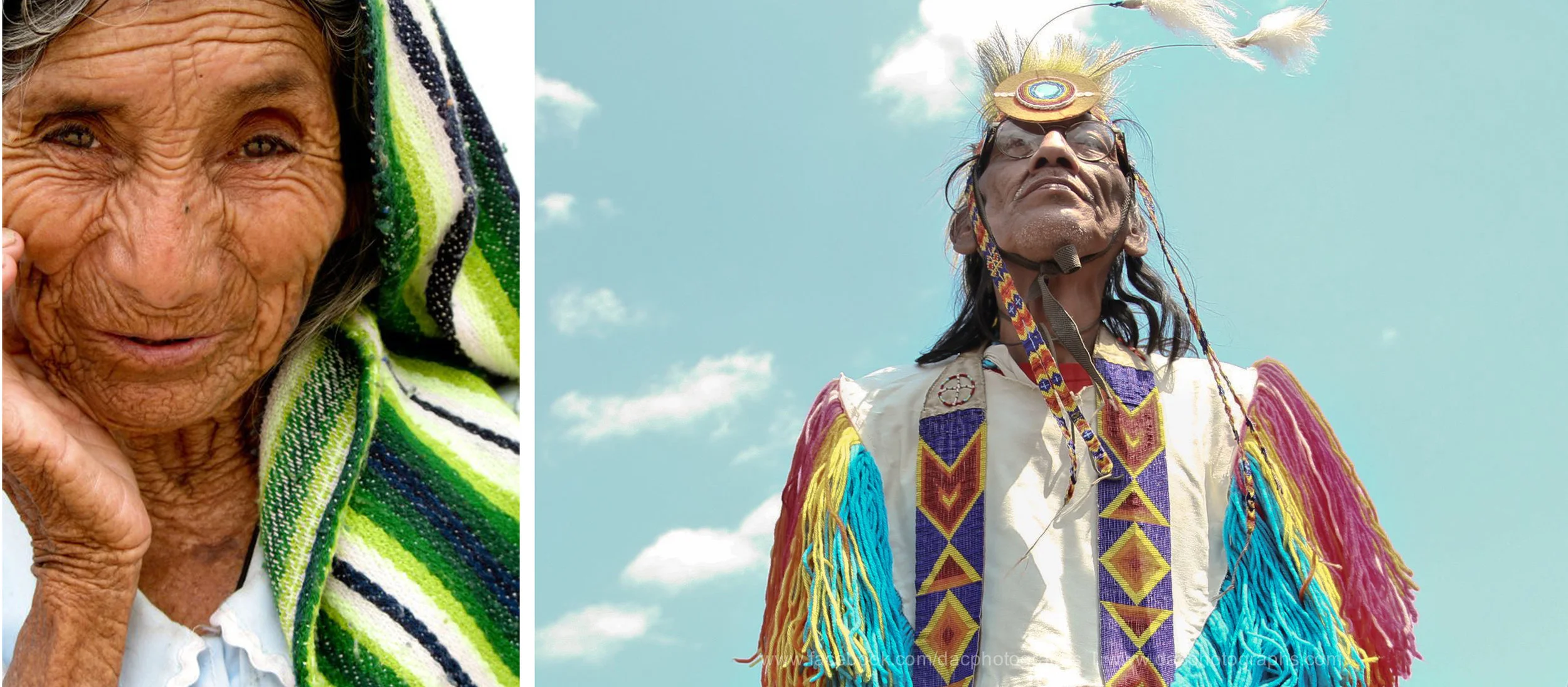 Elders. (Left) Panchimalquense woman. (Right) Protestor among an alliance of pipeline fighters, ranchers, farmers, tribal communities, and their friends rallied in Washington DC in April 2014 to fight against Keystone XL.