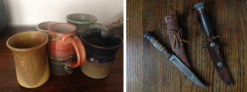 7. His collections. There are many things he enjoys collecting in multiples: ceramic mugs, knives, hats, belts and cameras.